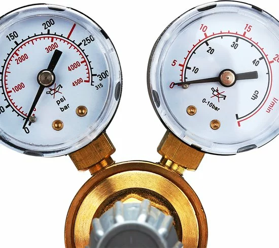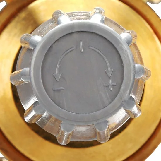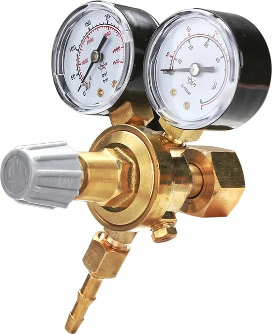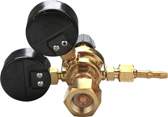 β De afzonderlijke onderdelen van de drukregelaar zijn alleen gemaakt van hoogwaardige en robuuste materialen. De displays op de co2-drukregelaar zijn speciaal duidelijk aangegeven. De regeling op de drukregelaar gebeurt met een draaiknop.