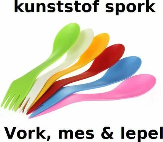 De spork is de ideale combinatie van lepel, vork en mes. Gemaakt van ABS kunststof waardoor deze spork praktisch is en geen nare smaak afgeeft aan het voedsel.