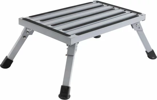 Een zeer solide en inklapbare opstap met antislip trede. Vergemakkelijkt het in- en uitstappen van onder andere een caravan. Eenvoudig in te klappen tot een dikte van slechts 7,5 centimeter. Hierdoor compact op te bergen en gemakkelijk mee te nemen. Gemaakt van hoogwaardig en stevig staal.