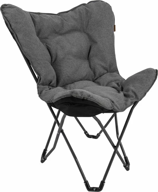 Een stijlvolle vlinderstoel uit de Urban Outdoor collectie. De luxe stoel is voorzien van een stijlvol donkergrijs stalen frame. De grijze zitting is gemaakt van Stof Nika. Stof Nika kentmerkt zich aan de een zachte touch met een robuuste uitstraling. De stoel is zeer comfortabel door de gepolsterde stof en de brede en diepe zit. Het frame is eenvoudig in te klappen waardoor de stoel handig mee te nemen is. Geschikt voor op de camping, in de tuin maar ook op het balkon of in huis kan deze stoel gebruikt worden.