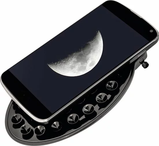 Wilt u vastleggen wat u ziet? Met de meegeleverde smartphonehouder kunt u met uw smartphone eenvoudig opnamen maken van hemellichamen – zoals door een telelens! Met de bijgeleverde camera-adapterring T2 kan ook een DSLR- of CCD-camera op de focuser bevestigd worden om hoge resolutie foto’s van de Maan vast te leggen met behulp van korte belichtingstijden. Hiervoor is optioneel alleen een cameraspecifieke T2-adapterring nodig.