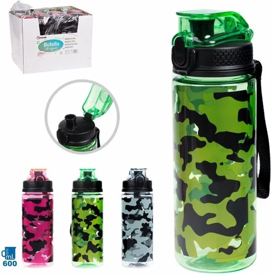 Sport Bidon drinkfles/waterfles camouflage print groen 600 ML. Waterfles met stevige sluiting en koordje.