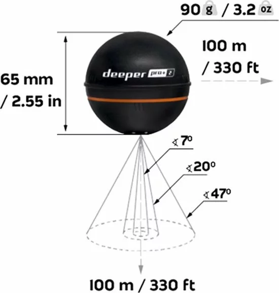 De Deeper Smart Sonar PRO+ 2 is een draagbare uitwerpbare fishfinder, ideaal voor het vissen vanuit een boot, bellyboat, kayak of ijsvissen en vanaf de oever! De Deeper PRO+ 2 koppel je eenvoudig via een wifi-verbinding aan jouw smartphone of tablet.