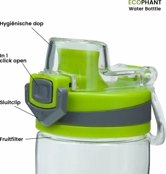 Water draagt bij aan een gezonde levensstijl, daarom is het belangrijk om het overal mee naar toe te kunnen nemen. Traditionele waterflesjes kunnen helaas niet meerdere keren gebruikt worden en verdwijnen dus in het afval. Wij willen een positieve bijdrage leveren aan het milieu en de natuur door onze herbruikbare waterfles zonder BPA. Deze Waterfles is voorzien van een drukknop met sluiting, waardoor hij niet per ongeluk open kan gaan.