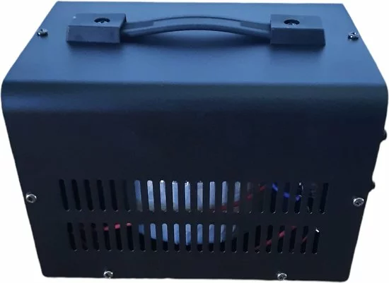 In een metalen doos voor maximale duurzaamheid. De ventilatieopeningen aan beide zijden voeren de warmte tijdens het gebruik effectief af. Om temperatuurstijging te voorkomen, beschikt onze transformator over geΓ―ntegreerde sleuven voor ventilatie.