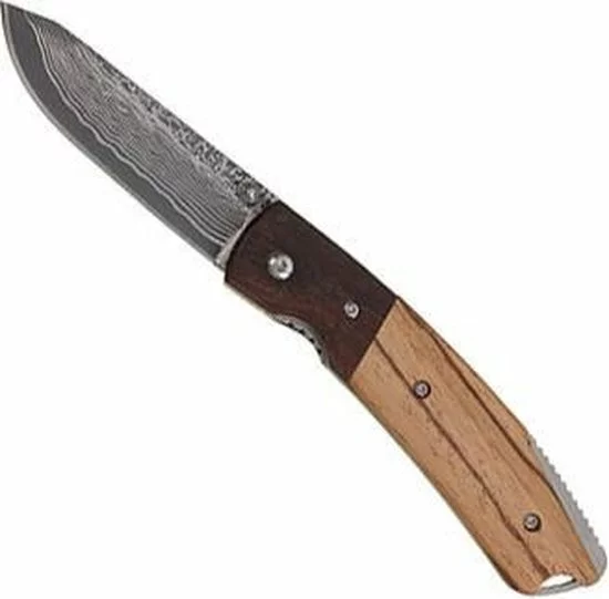 Dit mes van Homeij de Riccio heeft een lengte van 19cm. Het lemmet is vervaardigd van zeer fraai damaststijl RVS. Het RVS heft heeft schalen van Zebra en Rozenhout. Dit mes is voorzien van een koordgat en een clip om het stevig te zekeren in uw broekzak.