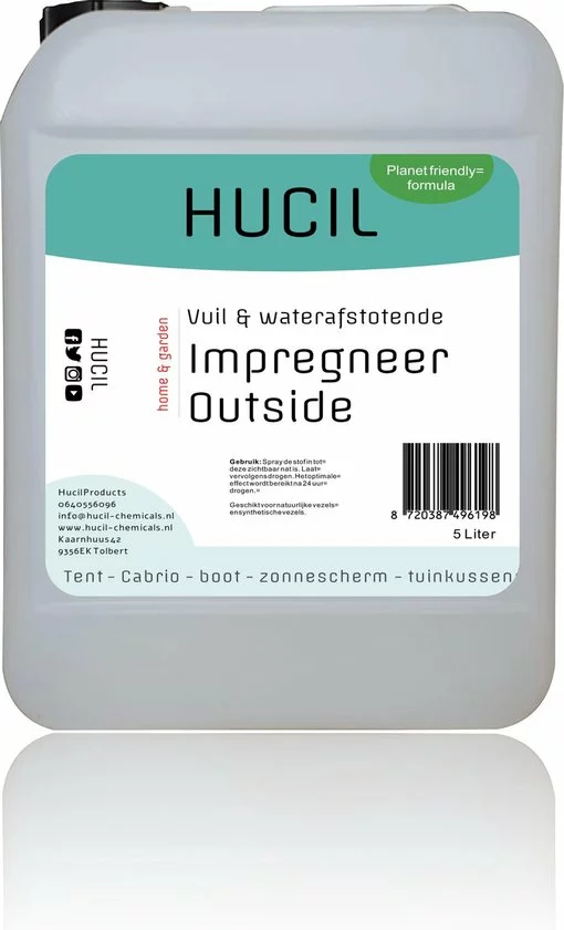 Deze fantastische impregneerspray van Hucil maakt al uw textiel vuil en waterafstotend. Daarnaast geeft dit impregneermiddel lange tijd bescherming tegen groene aanslag.