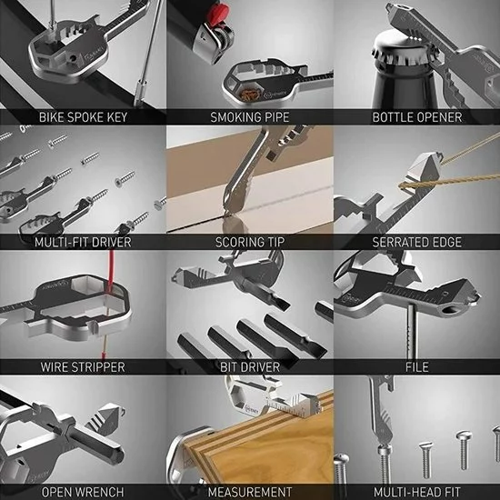 Met deze uit gehard staal vervaardigde multitool heeft u altijd gereedschap bij de hand.