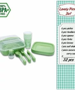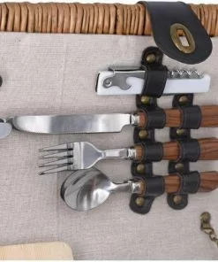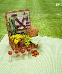 Coupon 🥰 Svenska Living – Picknickmand – 21delig – 4 Personen – Blauwe Ruit – 40cmx28cmx18cm 🔔