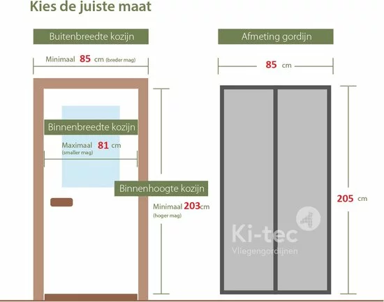 - Afmeting magnetisch vliegengordijn: 85 cm x 205 cm