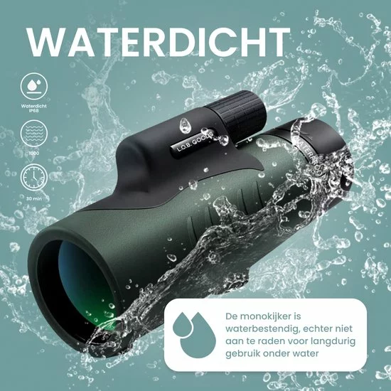 - Water- en stofdicht β Wanneer het regent tijdens het wandelen hoef je je geen zorgen te maken over de monokijker door haar regenproef design. Daarnaast gaat deze monokijker erg lang mee, omdat hij ook nog eens stofdicht. Dit maakt hem geschikt voor ieder weer en iedere omgeving.
