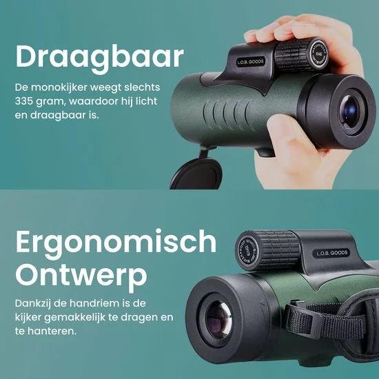 - Compact en licht design β Met een gewicht van 300 gram is deze monokijker van L.O.B. GOODS ideaal voor wandelaars, hikers en iedereen die een klein beetje ruimte over heeft in zijn of haar rugzak of hand.