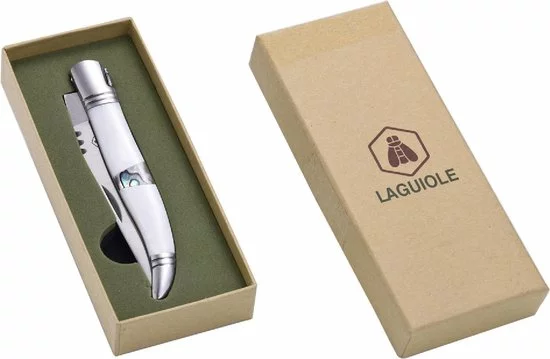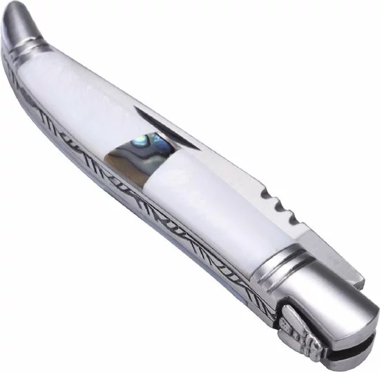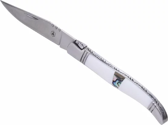 Met dit RVS zakmes met inlegde schelpen van het exclusieve merk Laguiole heb je niet alleen alles op zak om te overleven op kantoor, maar ook een echt sieraad.