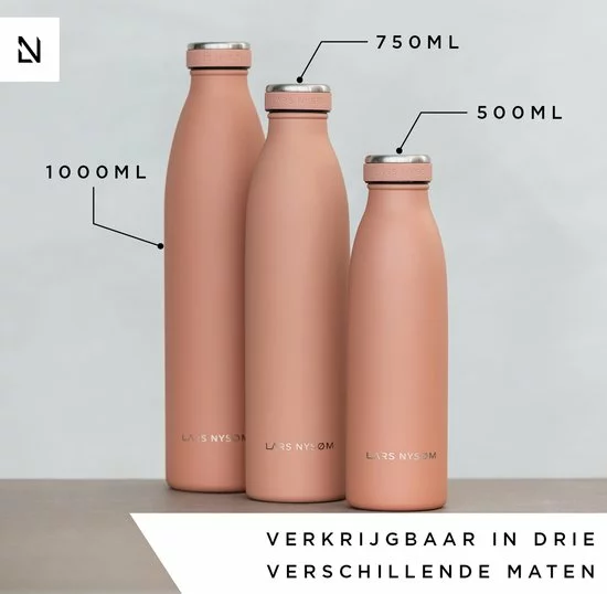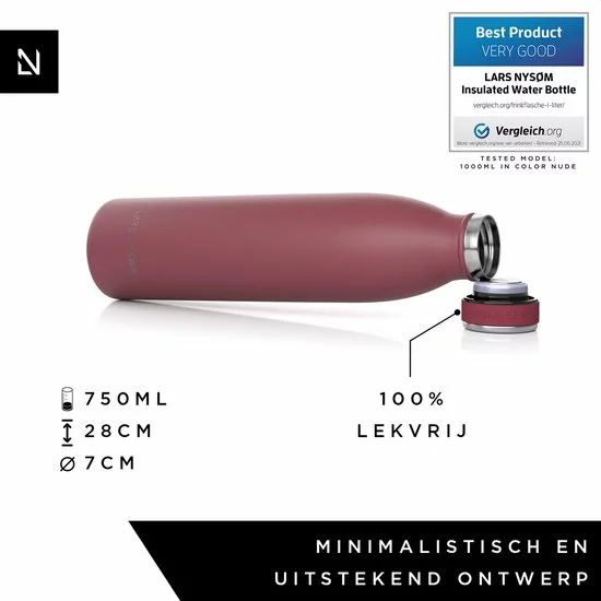 De roestvrijstalen drinkfles van LARS NYSΓM is het duurzame alternatief voor plastic flessen. Hoogte: 28,0 cm, Γ 7,0 cm, Inhoud: 750 ml, Gewicht: 341 g. Perfect voor kantoor, yoga, fitness, kinderen, baby of auto.