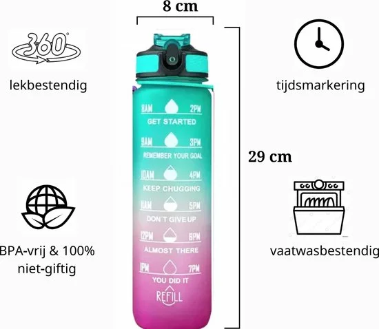 Plaats de motivatie drinkfles direct in je winkelwagen en geniet van de juiste hoeveelheid water