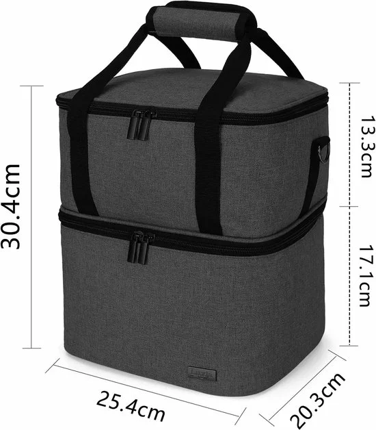 - Afmetingen: bovenste afmetingen: 25,4 cm x 20,3 cm x 13,3 cm (l x b x h). Afmetingen onderkant: 25,4 x 20,3 x 17,1 cm (l x b x h). Dit is een borstpompzak die aan je pompbehoeften voldoet.