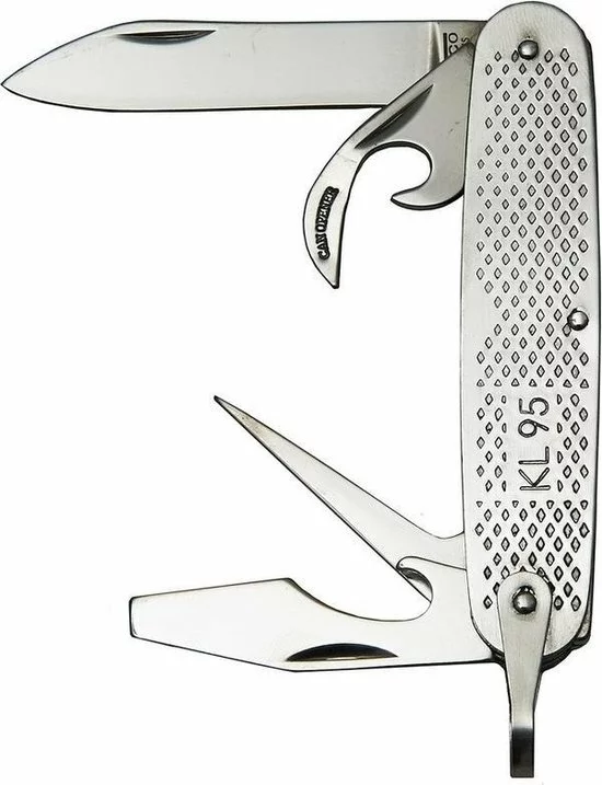 Fosco metalen survival zakmes 4 functies. Sterk replica leger zakmes KL 95 met 4 functies. Lengte wanneer ingeklapt: ca. 9 cm. Ideaal voor tijdens het kamperen of vissen. Materiaal: metaal. Outdoor/kampeer/vis benodigdheden metalen zakmessen.