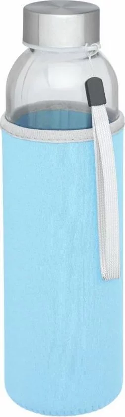 Groothandel 🎉 Merkloos Glazen Waterfles/drinkfles Met Lichtblauwe Softshell Bescherm Hoes 500 Ml – Sportfles – Bidon ❤️