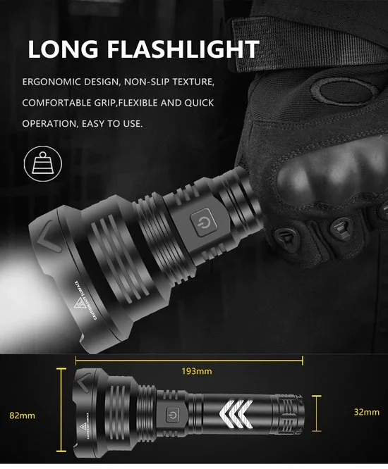 Deze X Pro-zaklamp wordt rechtstreeks opgeladen met een USB-kabel en heeft 5 lichtstanden.