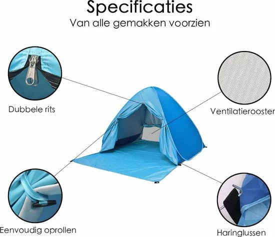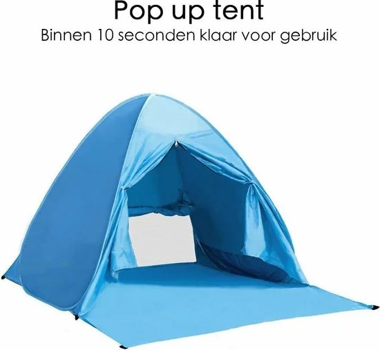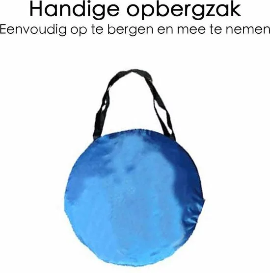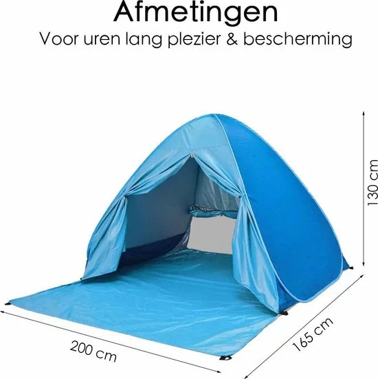 De Pop-up Tent is 200 cm breed en 165 cm lang. De strandtent is van lichtgewicht polyester waardoor je βm makkelijk overal naartoe neemt. Goed om te weten: je krijgt er haringen, een vloerzeil en een draagtas bij!