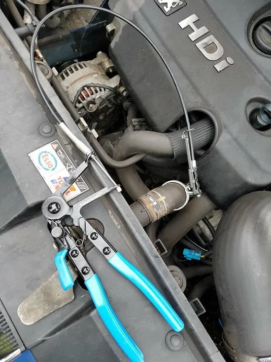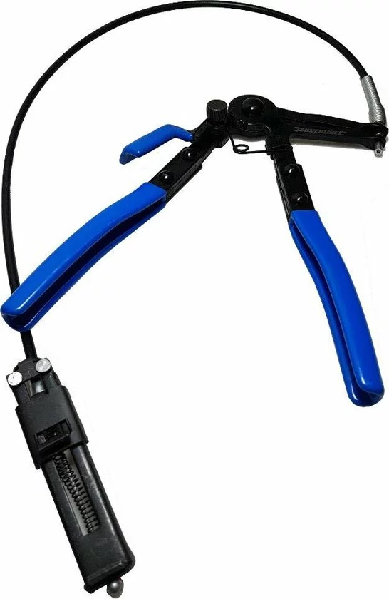 Door de kabel van 60cm is de tang Ideaal om te werken in beperkte motorruimte, het ratel mechanisme zorgt ervoor dat de klem open blijft als de tang word losgelaten.