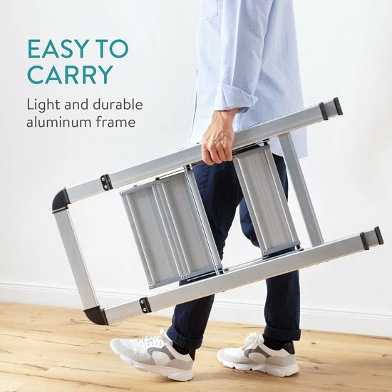 - HANDIG HULPJE: Een stevige huishoudtrap is onmisbaar in het huishouden! Dit aluminium opstapje in een modern, industrieel design, is erg licht maar bovendien ook erg stabiel! Mensen tot 150kg kunnen er gebruik van maken.