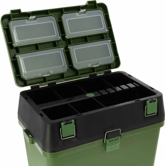NGT Session Seatbox System – Zitkoffer – Afmetingen: 36Γ28Γ24cm – Ideaal voor de korte sessies – Robuust & duurzaam – Stevige sluitingen – Kleine boxjes – Middelgrote vakken – EΓ©n groot vak – Slim ingedeeld – Voorzien van verstelbare schouderband – Groen/zwartDeze seatbox is ideaal voor de wat kortere sessies wanneer u geen zin heeft om uw hele plateau of normale zitkoffer op te bouwen of mee te nemen. Deze zitkoffer, vervaardigt uit stevig en robuust plastic heeft niet alleen een functie als βstoelβ, maar je kunt er ook een hoop visspullen in opbergen of meenemen! Zo is de zitkoffer aan de binnenzijde voorzien van kleine boxjes voor het opbergen van klein materiaal, zijn er vakken aanwezig voor iets groter materiaal en is er één groot vak onder het zitgedeelte voor de grote materialen. Bijvoorbeeld een zak voer, eten of drinken, etc. De koffer heeft de volgende afmetingen: 36Γ28Γ24cm.