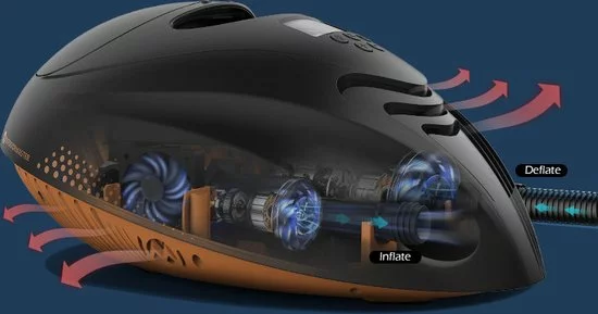 - De pomp heeft zowel een opblaas (inflate) functie als een leegloop (deflate) functie