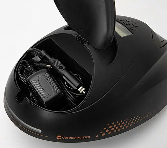 De Whale is een elektrische pomp van Outdoor Master. Een stijlvolle 12 volt elektrische pomp dat lucht onder hoge druk en via een consistent koelsysteem rond pompt. De pomp vult tot maximaal 16PSI en heeft een ingebouwde accu. Dit maak hem volledig draadloos!