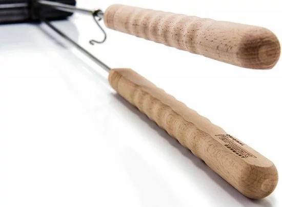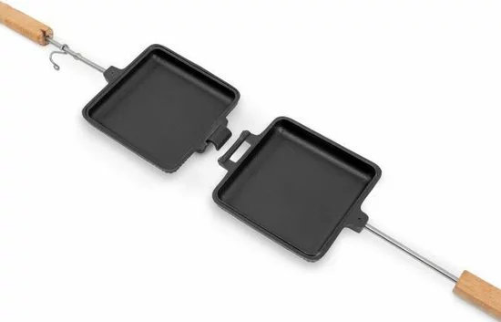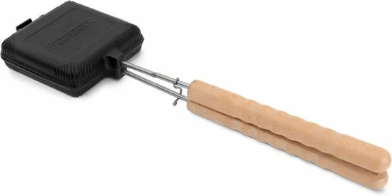 Het houten handvat ligt prettig in de hand en de staaf zorgt voor voldoende afstand tot de warmtebron. Het gietijzer heeft een zogenaamde doorgewinterde finish en is daardoor direct klaar voor gebruik. Om schoon te maken, scheidt u de gegoten helften eenvoudig van elkaar met behulp van het scharnier: ook dit is bijzonder gemakkelijk omdat gietijzer een natuurlijke antiaanbaklaag heeft.