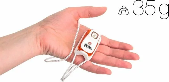 De Petzl Bindi weegt slechts 35 gram, enorm compact en dus eenvoudig mee te nemen. De dunne elastieke hoofdband neemt daarnaast ook weinig plek in beslag en zit comfortabel op het hoofd. Ook is de hoofdlamp hierdoor prettiger te dragen om de nek waarbij de hoofdlamp te kantelen is. De hoofdlamp is kantelbaar voor een juiste positie en naar een blokeerstand zodat de aan/uit knop niet in te drukken is bij bijvoorbeeld transport in de tas of rugzak.