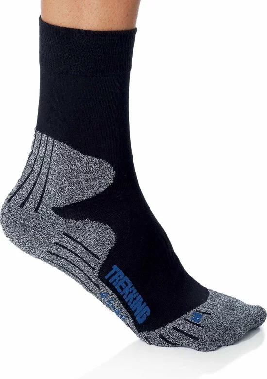 Trekking sportsokken voor volwassenen. Speciale sokken die bescherming bieden tegen vocht. De sokken zijn ademend en sneldrogend. Ergonomische ondersteuning en bescherming voor de voeten dankzij een speciale tricot. Materiaal: 50% katoen, 38% Coolmax, 9% polyamide en 3% lycra.
