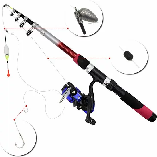 De hengel heeft een lengte van 2,4 meter en is daarmee geschikt om elke vis te vangen. Je kan de hengel inschuiven tot op een lengte van 45,5 cm. Verder is de set voorzien van een tas waar je al de producten kan in stekken, op deze manier kan je alles gemakkelijk meenemen ideaal dus wanneer je de set wilt vervoeren met de fiets. De set bevat ook een onthaker zo kan je de vis gemakkelijk losmaken.