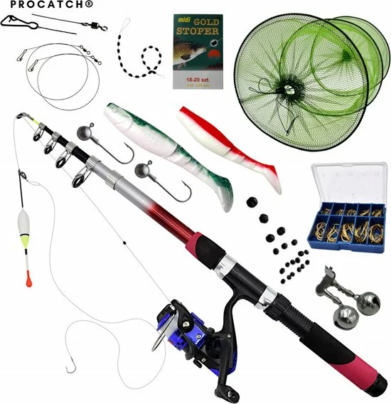 Dankzij de Vishengelset van ProCatch® beschik je over een complete set, waarmee je rechtstreeks naar de waterkant kunt gaan om te vissen! De set van ProCatch® is de perfecte set voor de gevorderde, beginnende of –gelegenheidsvisser en voor iedereen die wil kennismaken met de hengelsport. De ProCatch® hengelset is een ‘ready-to-fish’ set; deze set bevat twee telescopische hengels, visvoer (mais), twee werpmolens, vislijn, onthaker en nog veel meer!