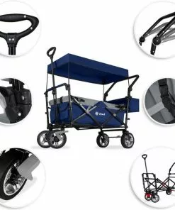 Nieuw 🛒 Rijoka Luxe Opvouwbare Bolderkar/Bolderwagen | Met Dakje En Draagtas | Marine Blauw 🔥