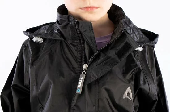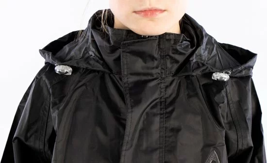 - capuchon in de kraag met elastisch koord met stoppers in de capuchon en in de zoom