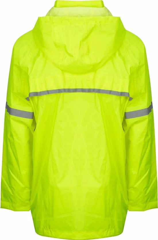 Het regenjack heeft een capuchon in de kraag, een overslag met extra ventilatie op de rug en verstelbare klittenbandsluitingen bij de mouw. Zo sluit het jasje goed aan en komt er geen regenwater naar binnen. Het jack heeft twee steekzakken en een waterdichte rits.