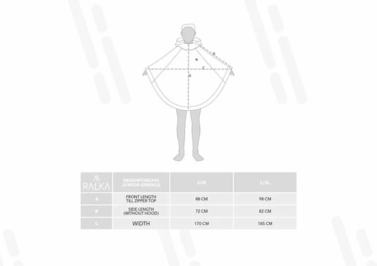 Trendy poncho, dus zie er goed Γ©n krijg nooit meer een nat pak! Je blijft lekker droog met de Ralka Sizzle Regenponcho. Trotseer gemakkelijk elke regenbui tijdens het fietsen, wandelen met de hond of tijdens allerlei soorten buitenactiviteitenl. Je trekt deze hippe unisex poncho snel en makkelijk aan over je eigen kleding waardoor je in een mum van tijd beschermd bent tegen wind en regen. De extra waterbestendige poncho heeft een grote capuchon en valt ruim, waardoor je vrij kunt bewegen. Dankzij het 4000mm waterdichte PU materiaal en de gelaste naden kun je er zeker van zijn dat deze luxe poncho geen water doorlaat. Door de polyester voering voelt de poncho zacht en comfortabel aan. De regenponcho heeft drukknopen aan de zijkant, om mouwen van te maken. Op deze manier blijft de poncho goed zitten en sluit deze goed aan om de armen. Daarnaast heeft de poncho handige zakken met overslag waar je bijvoorbeeld je sleutels of telefoon waterdicht in kunt bewaren. Tenslotte heeft de poncho een waterbestendige rits en kun je hem ook gebruiken als fietsponcho door de extra anti-opwaailussen aan de binnenkant. Je kunt de cape gemakkelijk opbergen en overal mee naartoe nemen.
