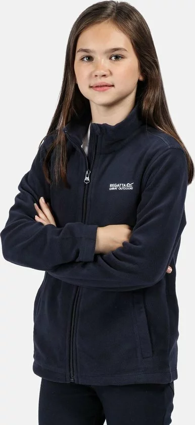 De King Fleece van Regatta voor kinderen is gemaakt van Symmetry-fleece en heeft een antipluisafwerking. Het product is voorzien van twee handige zakken en een fijne kol.