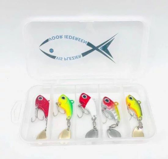 Deze set bevat 5 kunstaas spinners zijn speciaal ontwikkeld om vissen aan te trekken, en dan met name roofvissen. De pluggen hebben namelijk felgekleurde patronen die lijken op het aas wat de roofvissen aantrekken.