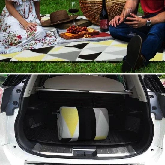 Het waterdichte buitenkleed is makkelijk om mee te nemen naar allerlei activiteiten. Ondanks de grote omvang van het kleed is het makkelijk om het kleed te vouwen tot een klein pakketje en vast te maken met een klittenbandafsluiting. Het picknickkleed bevat ook een draagband waardoor meenemen nog makkelijk wordt. Neem het picknickkleed mee naar allerlei activiteiten, zoals zonnen in het park, gezellig picknicken of zelfs mee naar het strand. Maar ook in de speeltuin of in de achtertuin komt het kleed goed van pas!