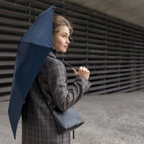 De Senz Automatic is een stormparaplu die opvouwbaar is en dankzij zijn formaat perfect past in een schoudertas of rugtas. Het model is erg gemakkelijk te openen en sluiten met slechts één druk op de knop. Deze paraplu is windbestendig tot 80 km/h en heeft een aerodynamisch design. Hierdoor kiest de paraplu altijd de meest comfortabele positie in de wind. Daarom is de Senz Automatic prettig te gebruiken tijdens een storm of regenbui. De Senz Automatic heeft een uniek frame met variabele lengtes van de baleinen; een nieuw principe in de paraplubranche. De ingebouwde ‘storm lock’ voorkomt dat het frame inzakt, zelfs bij zware wind.
