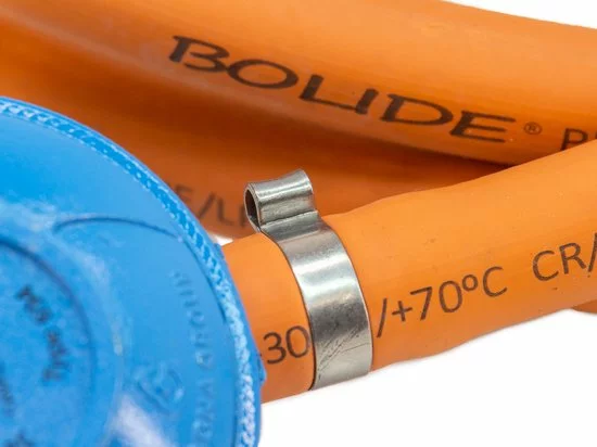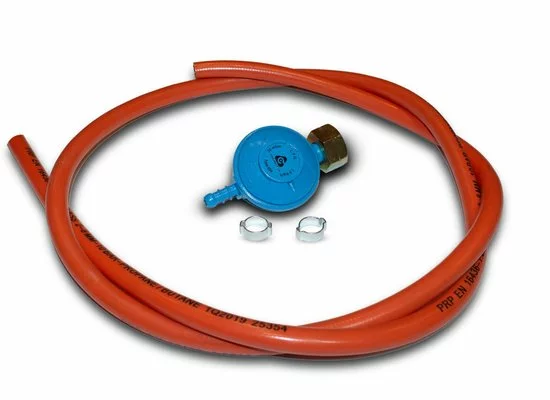 Gasdrukregelaar 30mBar inclusief 1.5m propaanslang 8mm en slangklemmen.
