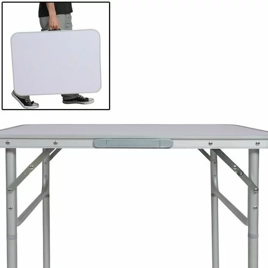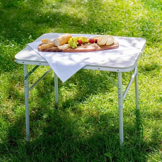 Een zeer lichte en compacte campingtafel. Voor het balkon, in de tuin of bij het kamperen Ze heeft het voordeel dat ze vrijwel overal flexibel ingezet kan worden. Het lakboard tafelblad is bestand tegen vocht en andere milieu-invloeden. Samengeklapt kan ze overal meegenomen worden.