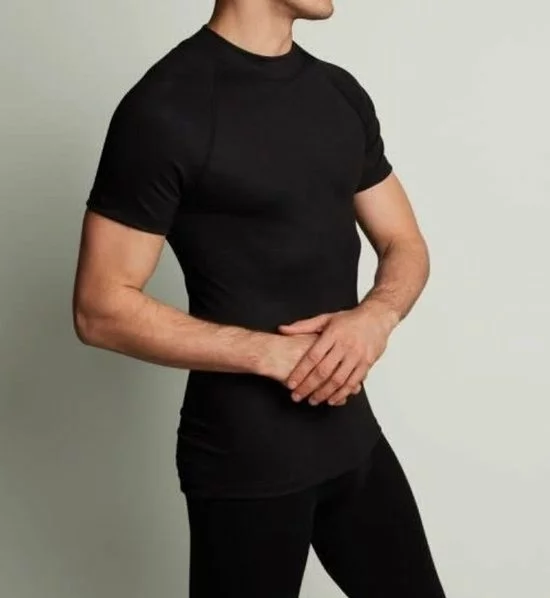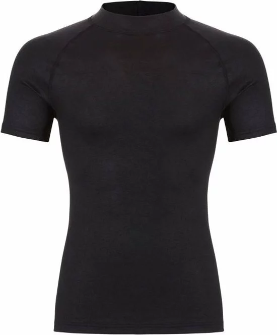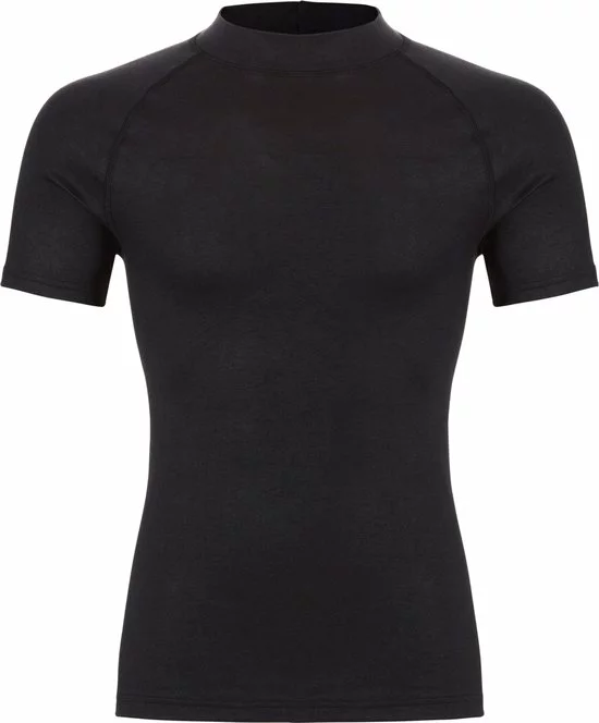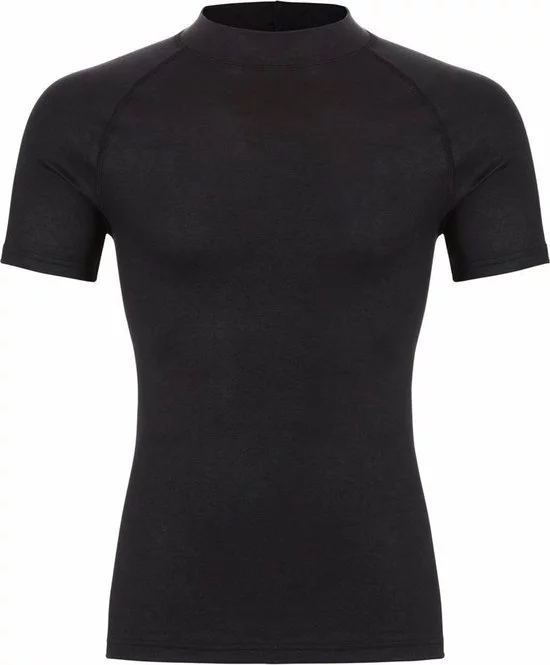 Met dit zwarte thermo shirt blijf je zeker warm deze winter of tijdens de wintersport. Het shirt heeft korte mouwen en een ronde hals met licht opstaande boord. Het shirt zit nauwsluitend en draag je dan ook gemakkelijk onder je normale kleding. Het shirt heeft een normaal was-etiket en is aan de voorzijde afgewerkt met een klein detail van het herten-logo van Ten Cate.