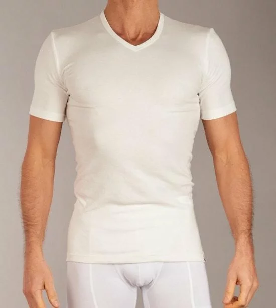 Met dit wit thermo shirt blijf je zeker warm deze winter of tijdens de wintersport. Het shirt heeft korte mouwen en een v-hals. Het shirt zit nauwsluitend en draag je dan ook gemakkelijk onder je normale kleding. Het shirt heeft een normaal was-etiket en is aan de voorzijde afgewerkt met een klein detail van het herten-logo van Ten Cate.