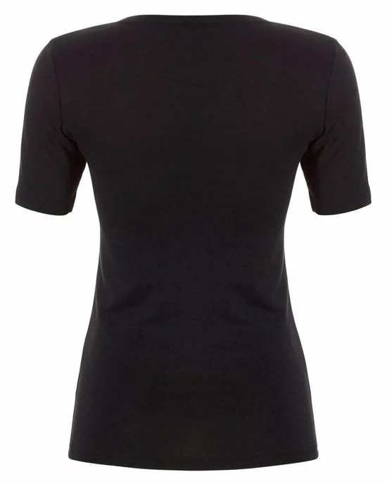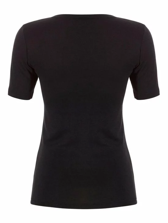 Met dit zwarte thermo shirt blijf je zeker warm deze winter of tijdens de wintersport. Het shirt heeft korte mouwen en een ronde hals. Het shirt zit nauwsluitend en draag je dan ook gemakkelijk onder je normale kleding. Het shirt heeft een normaal was-etiket en is aan de voorzijde afgewerkt met een klein detail van het herten-logo van Ten Cate.