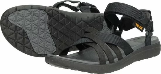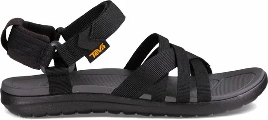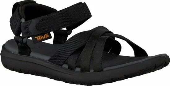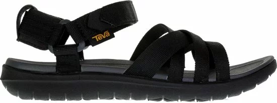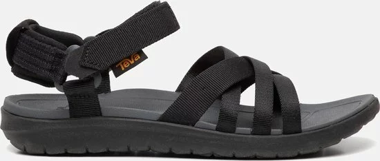 Sandaal Merk: Teva Model: Sanborn Universal Kleur: Zwart Materiaal: 100% textiel Materiaal zool: EVA Rubber Schokdemping Mesh ventilatie Dubbele verstelbare sluiting Zeer prettig draagcomfort Damescollectie