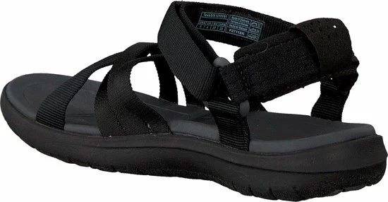 TEVA – WOMEN – SANBORN SANDAL – BLACK Deze klassieke sandaal, genaamd Sanborn Universal, van het hoogwaardige merk Teva is geheel gemaakt van textiel. De duurzame textiel banden zijn tegen een stootje opgewassen. De banden zijn namelijk bestand tegen water en sneldrogend. Doordat de sandaal is voorzien van een dubbele verstelbare sluiting kunt u een optimale pasvorm creοΏ½ren. U kunt urenlang wandelen op deze sandaal doordat deze is voorzien van een EVA voetbed. Met andere woorden, dit voetbed gaat geheel naar uw voet staan. Daarbij heeft Teva ook gedacht aan het uiterlijk, want de zwarte kleur is gemakkelijk te combineren met verschillende zomerse outfits. Kortom, deze sandaal mag deze zomer niet ontbreken!