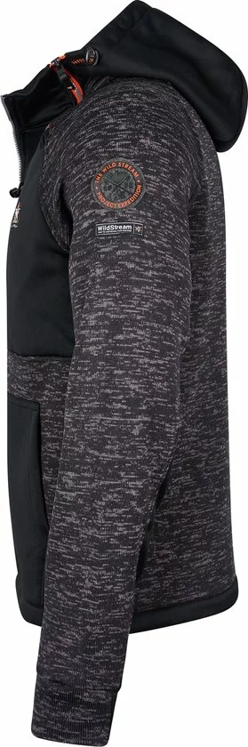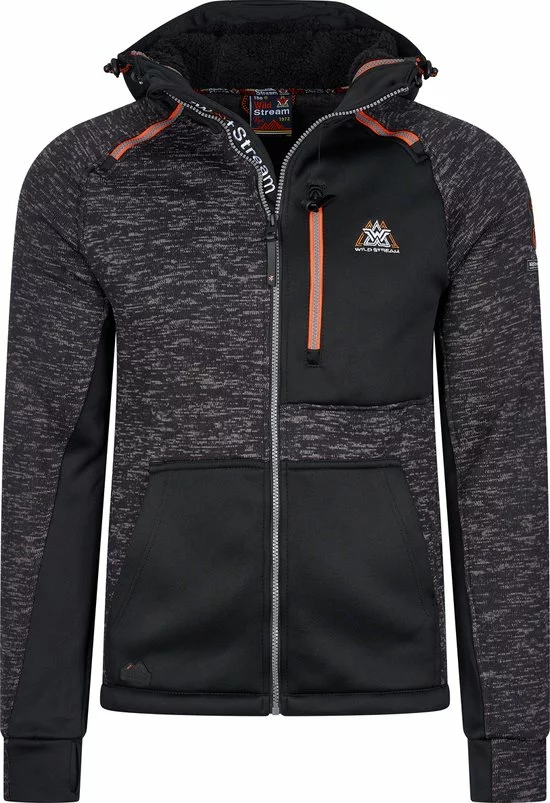 Wildstream – Heren Fleece Gevoerd -Jack-Vest- Rits-Steekzakken- speciaal voor Heren- van het merk Wildstream is verkrijgbaar in de kleur Black/Navy.Materiaal:96%Polyester 4%ElastanDessin: Meerdere Details: Ja.Pasvorm: Normaal.Soort: gevoerd.Zakken: Ja Capuchon:Ja